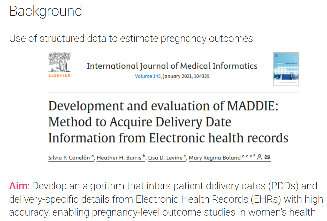 Pregnancy status is not explicitly recorded in any dedicated section of SIGEHOS, the Hospital Information Management System in use since 2016. That means key information — pregnancy start and end dates, estimated delivery date, gestational age at first visit — has to be inferred from structured and unstructured fields scattered across the EHR.